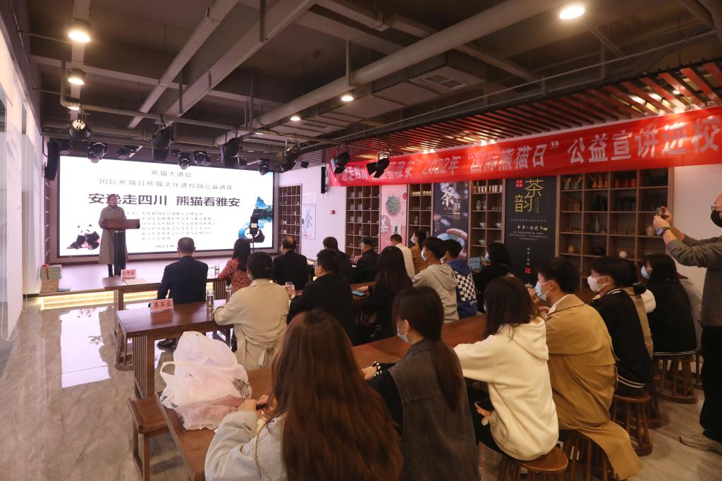 10月27日为“国际熊猫日”。为深入学习贯彻党的二十大精神,坚持以习近平新时代中国特色社会主义思想铸魂育人,积极探索习近平生态文明思想进校园的有效路径与育人机制,着力构建高质量教育教学工作体系,10月27日下午,依托于雅安职业技术学院(以下简称“雅职院”)生态文明研修基地,由雅职院马克思主义学院、经济与管理学院联合承办的“熊猫大讲坛——‘国际熊猫日’熊猫文化进校园公益讲座活动”在我院成功举行。大熊猫国家公园雅安管理分局党组成员、副局长王岩飞,中国大熊猫保护研究中心雅安基地综合部部长郭勤,四川省大熊猫生态与文化建设促进会会长罗光泽、副会长简述全、秘书长李宏凯、会员部部长王占杰,雅职院经济与管理学院党总支书记高运荣、继续教育与国际交流处副处长李石庄、马克思主义学院副院长任虹静,雅安文旅集团工作人员,师生代表参加活动。活动由马克思主义学院副院长王坤容主持。