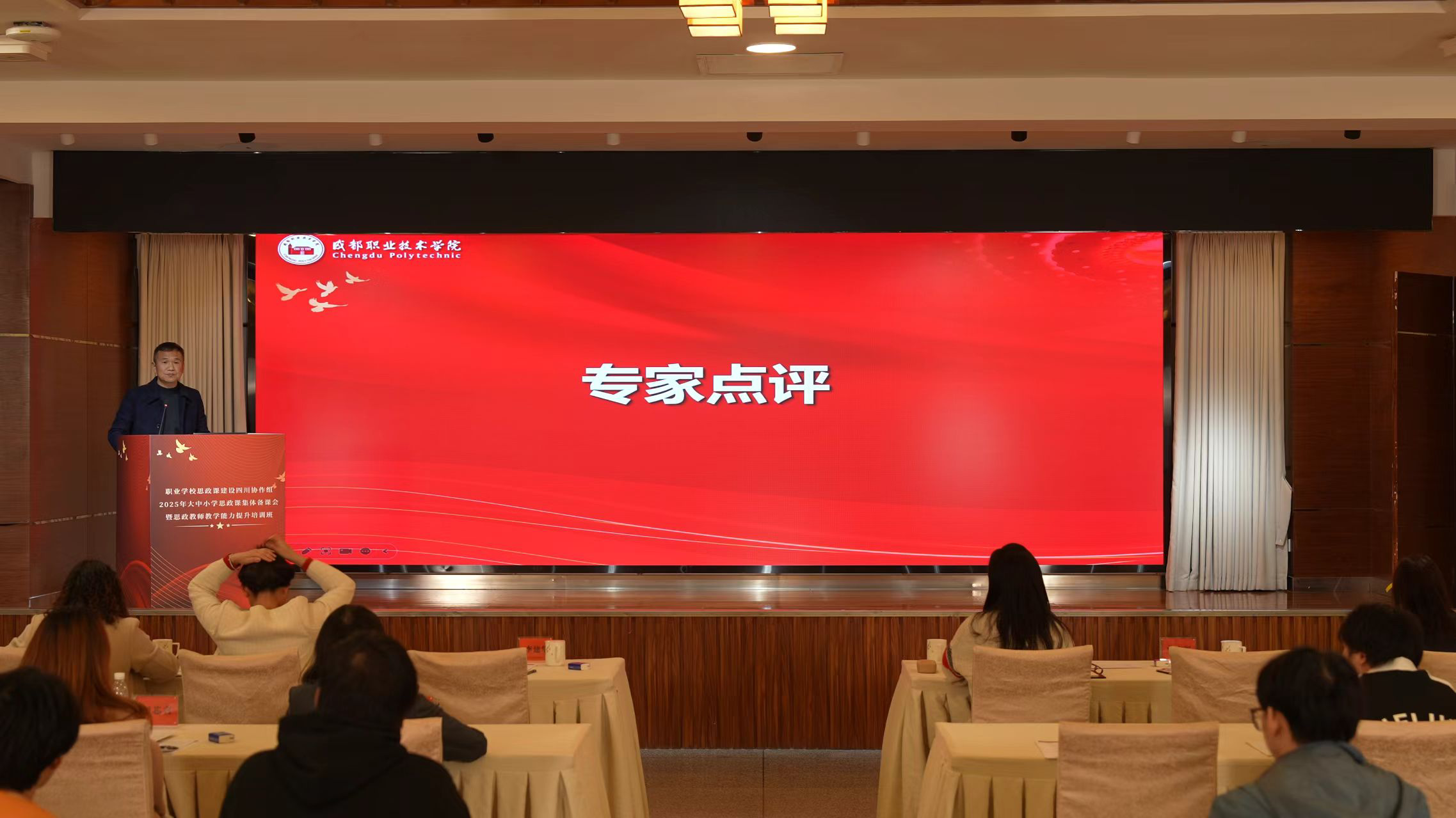 为深入学习贯彻习近平新时代中国特色社会主义思想和全国教育工作会议精神,全面落实习近平总书记关于思想政治理论课建设的重要指示精神,2025年11月14日,职业学校思政课建设四川协作组举办了“深学细悟新思想 铸魂育人新征程”大中小学思政课集体备课会暨思政课教师教学能力培训班。本次培训由雅安职业技术学院、成都职业技术学院、四川省成都市财贸职业高级中学校联合承办,是四川省推进大中小学思政课一体化改革创新、落实立德树人根本任务的关键举措,对于全面提升思政课教师教育教学能力、构建“大思政课”新格局具有重要促进作用。培训采用线上线下结合形式,设置雅安、成都两个线下会场并同步线上直播,汇聚川渝两地三百余名大中小学思政教育工作者共襄盛举。
